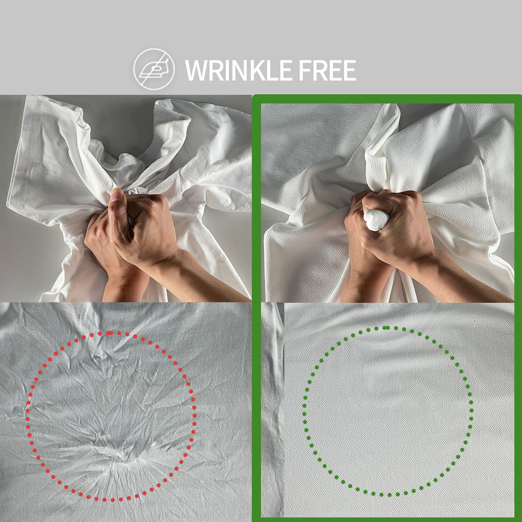 Material Quality:Wrinkle free Colour:Good Good quality, wrinkle free (took the pic right after unpacked), haven't try to wear it outdoor yet, hopefully is cooling. Btw, nice color and material.