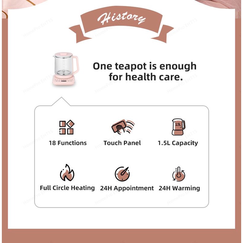 HomePro EHT15 Electric Health Teapot/Multi-function Kettle/18 Menus/1.5L/3-pin SG Plug/SG Warranty