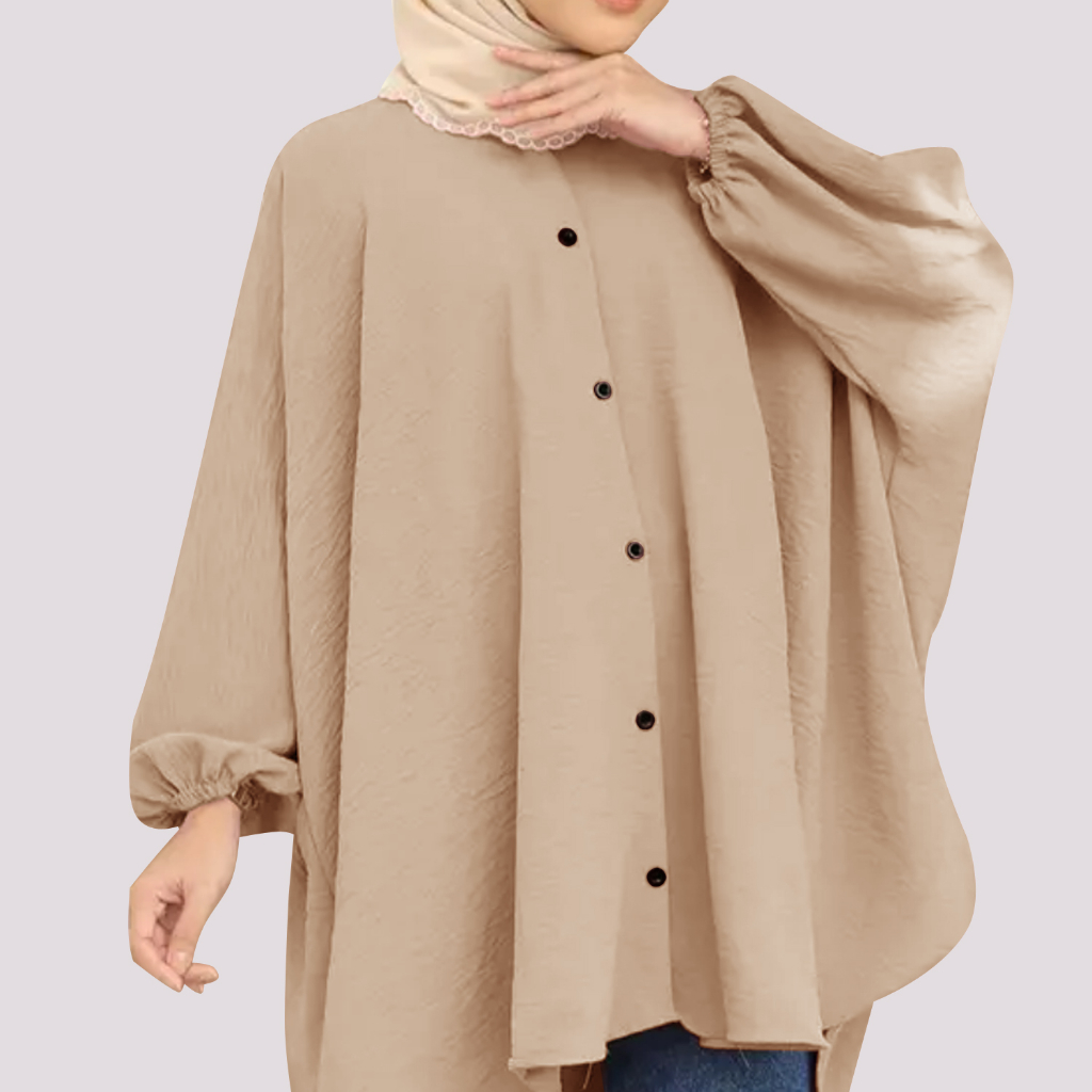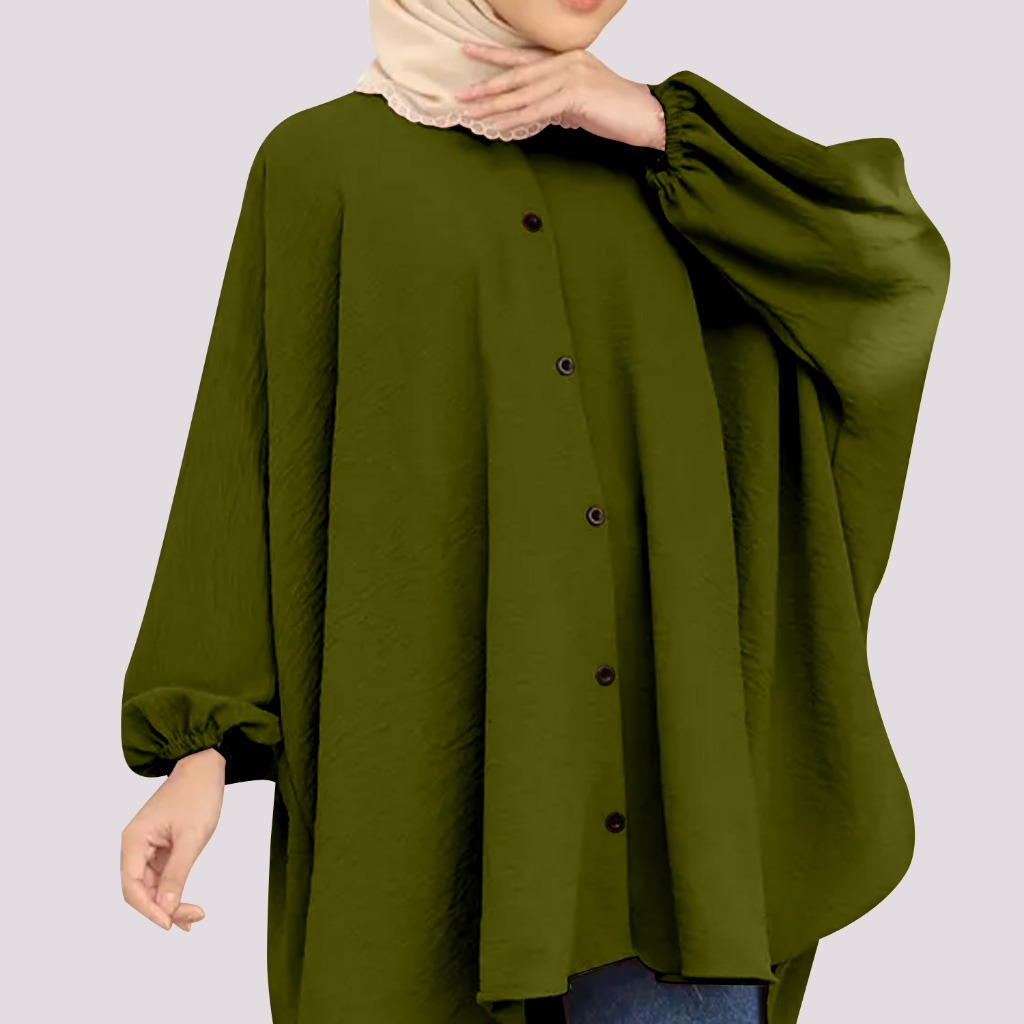 Received the delivery of Korean Style Women Long Friendly Sleeve Blouse Italian Crepe Viral Shirt Baggy Top Blouse Viral / Free Size promptly. Material is cooling and quality is good. Really comfortable to wear and suitable for hijabis. I will definitely buy other colors soon. Thank you seller.