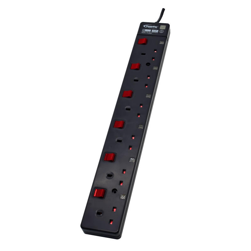 PowerPac Extension Cord, Extension Socket, Power Cord 3 Meter 1/2/3/4/5/6 way (PP3881BK to PP3886BK)