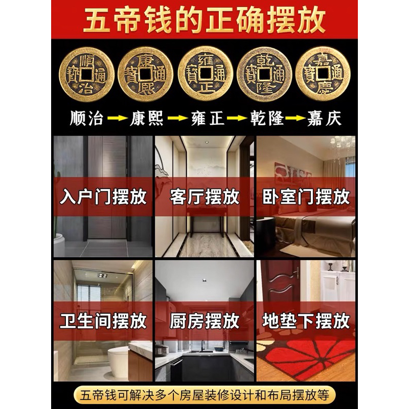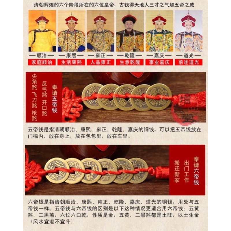 Quality:Good Suitability:As described The coins of ten emperors, urban legend has it that holding five of them, subdue evils and bring good luck, when you hold ten, you are invincible and almighty! Split them half, you can double the effect. Whatever it is, it is a very powerful amulet that balanced fengshui and curb with bad luck at home.