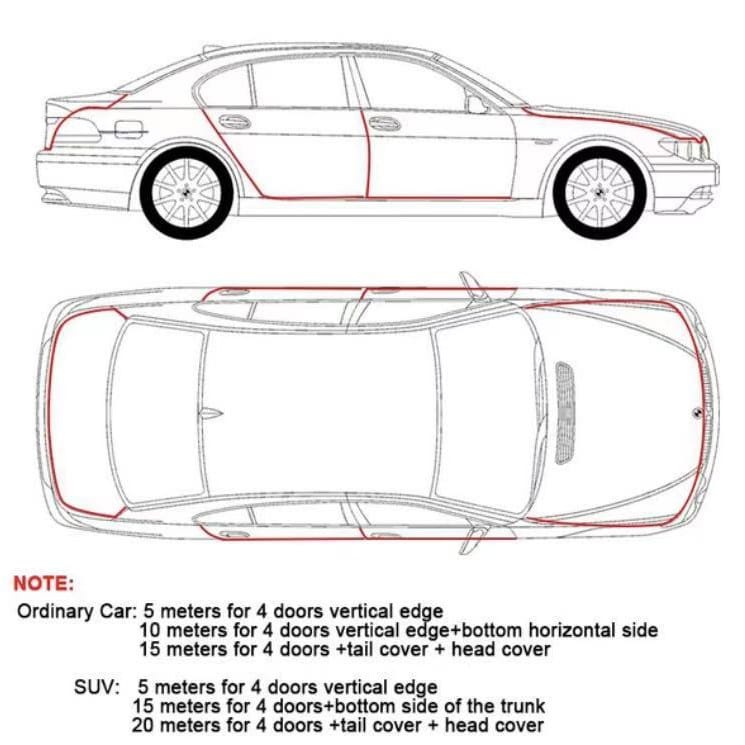 Performance:so far so good Quality:great Suitability:greay Highly recommend. 9 meters was enough for our Honda Vezel (4 doors, 1 trunk). Easy to install, used our toddler’s wooden hammer. Fits like a glove. Fast delivery. Thanks seller.