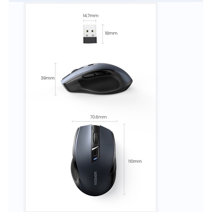 UGREEN Wireless Mouse, 6 Silent Buttons, 2.4G with USB Mini Receiver, 5 Level DPI Setting 4000DPI, Ambidextrous PC / Mac /Linux Laptop