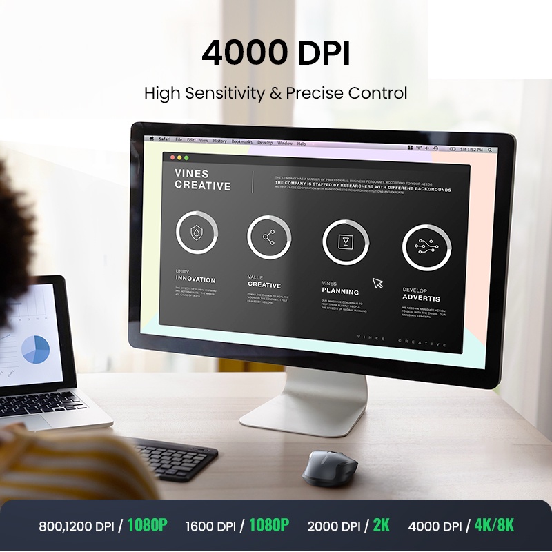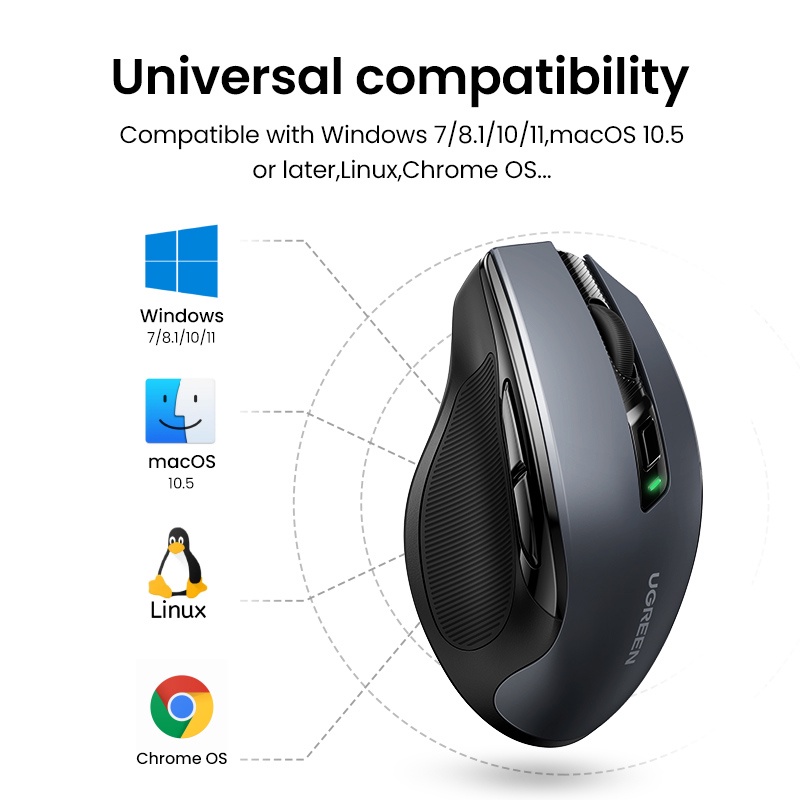 Ugreen Vertical Ergonomic 4000DPI Wireless Silent Click Mouse for Laptop PC Windows Mac OS